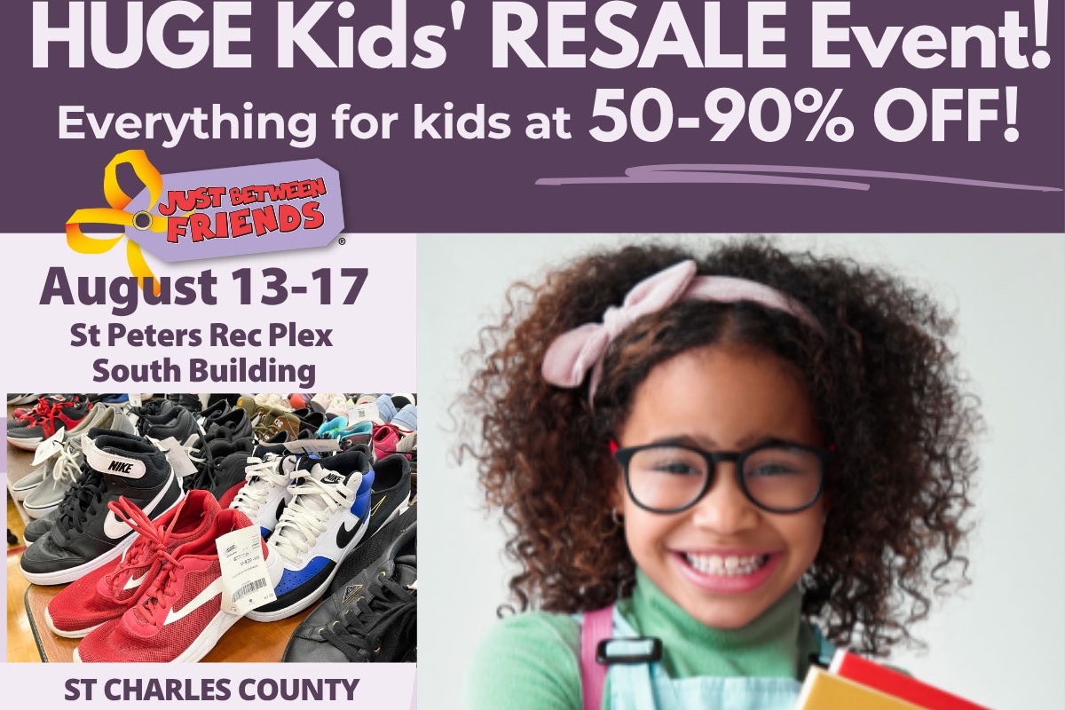 The Just Between Friends Back to School Sale is coming to the St. Peters Rex Plex August 13-17! Shop this giant kids' and maternity resale event for bargains up to 90% below retail. Choose from thousands of new and gently used items, including clothes, toys and gear, for infants, kids and maternity.