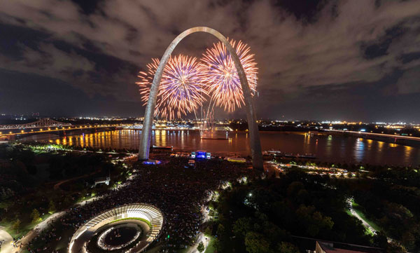 Head to the Gateway Arch for the annual city-wide celebration Celebrate St. Louis. This year, Celebrate Saint Louis features an all-new drone show, a Family Fun Zone, live musical performances, interactive exhibits, and fireworks framed by the Gateway Arch. The two-day festival kicks off Thursday, July 3 at 4 p.m. with live music and fireworks along the St. Louis Riverfront at 9:40 p.m. On July 4, gates open at 2 p.m. with interactive exhibits, a Family FunZone with games, crafts, and kid-friendly activities, live music from Gavin DeGraw, a Salute to the Troop ceremony honoring veterans and active duty service members, a Superman Drone Show at 9:20 p.m., followed by a spectacular fireworks show at 9:40 p.m.